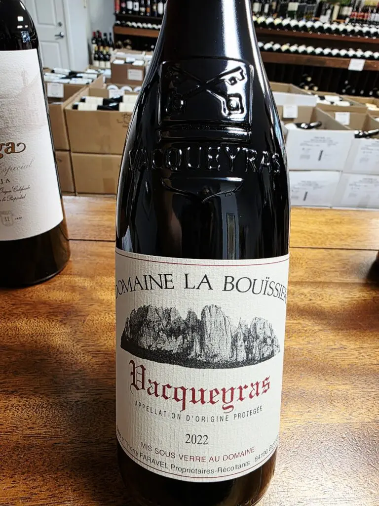 From a plateau cooled by mistral winds, Bouïssière crafts a Vacqueyras that’s equal parts muscle and grace. The blend is Grenache, Syrah, Mourvèdre — classic GSM proportions, with Grenache leading the charge at 45%. Expect black raspberry, lavender, garrigue herbs, and just a touch of pepper. The tannins are polished but still grip. It feels both rugged and refined, like a well-worn leather jacket over a linen shirt. Pair with grilled lamb, herbed pork roast, or charcuterie heavy on black pepper.